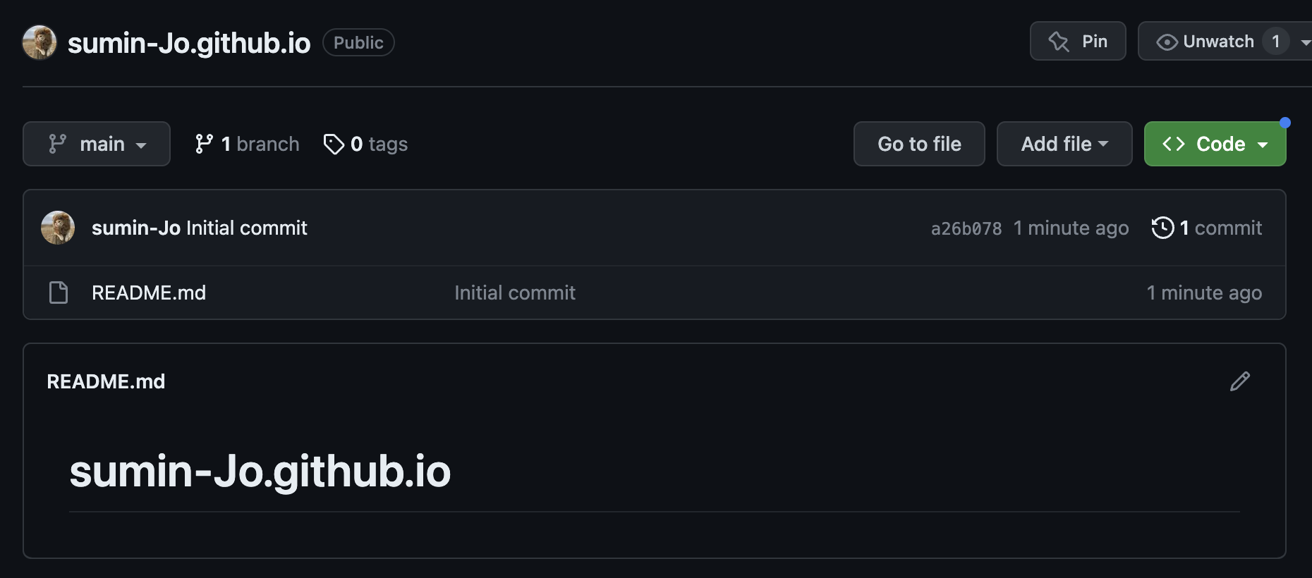 원격 저장소에 잘 올라왔다. 올라온 후로부터 사이트 확인하기까지 시간이 좀 걸린다.