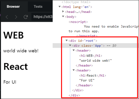 그렇게 되면 클라이언트(브라우저)에는 제가 정의한 태그는 보이지 않고